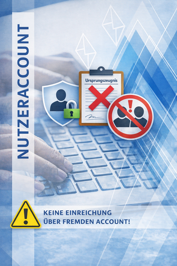 Ursprungszeugnisse dürfen ausschließlich über den eigenen, persönlich zugeordneten Nutzeraccount eingereicht werden. Die Nutzung fremder oder gemeinsam genutzter Accounts ist unter keinen Umständen zulässig – weder durch Admins noch durch Nutzer. Bitte stellen Sie sicher, dass jede Antragstellung eindeutig dem verantwortlichen Nutzer zugeordnet ist.